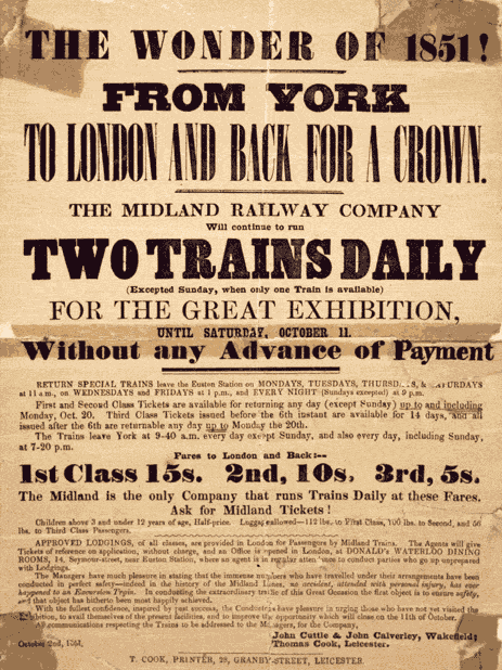 Railway Revolution of late 19th Century As I was searching through archives of design through York, I realised that there was a significant change in the advertising styles around 1850’s onwards. This was the time the Railway Revolution was at it’s peak and of course, this big change meant great things for the small, market town of York. The new train line from London to York resulted in a demand for sharp and clear advertising for the small businesses. Probably not a typical evolutionary design step to choose but I feel for York, this was a big change. Suddenly the typography represented a more modern town, they pushed advertising for the Industrial Exhibitions at the still-existing York Art Gallery. The increased traffic meant more visitors which resulted in more money being pushed into clear advertising. I find the shift in typography fascinating – from hand drawn or painted posters to wood and metal engraving prints and onto lithography. All of a sudden, typefaces became an important factor in advertising. This is clear with the below examples.