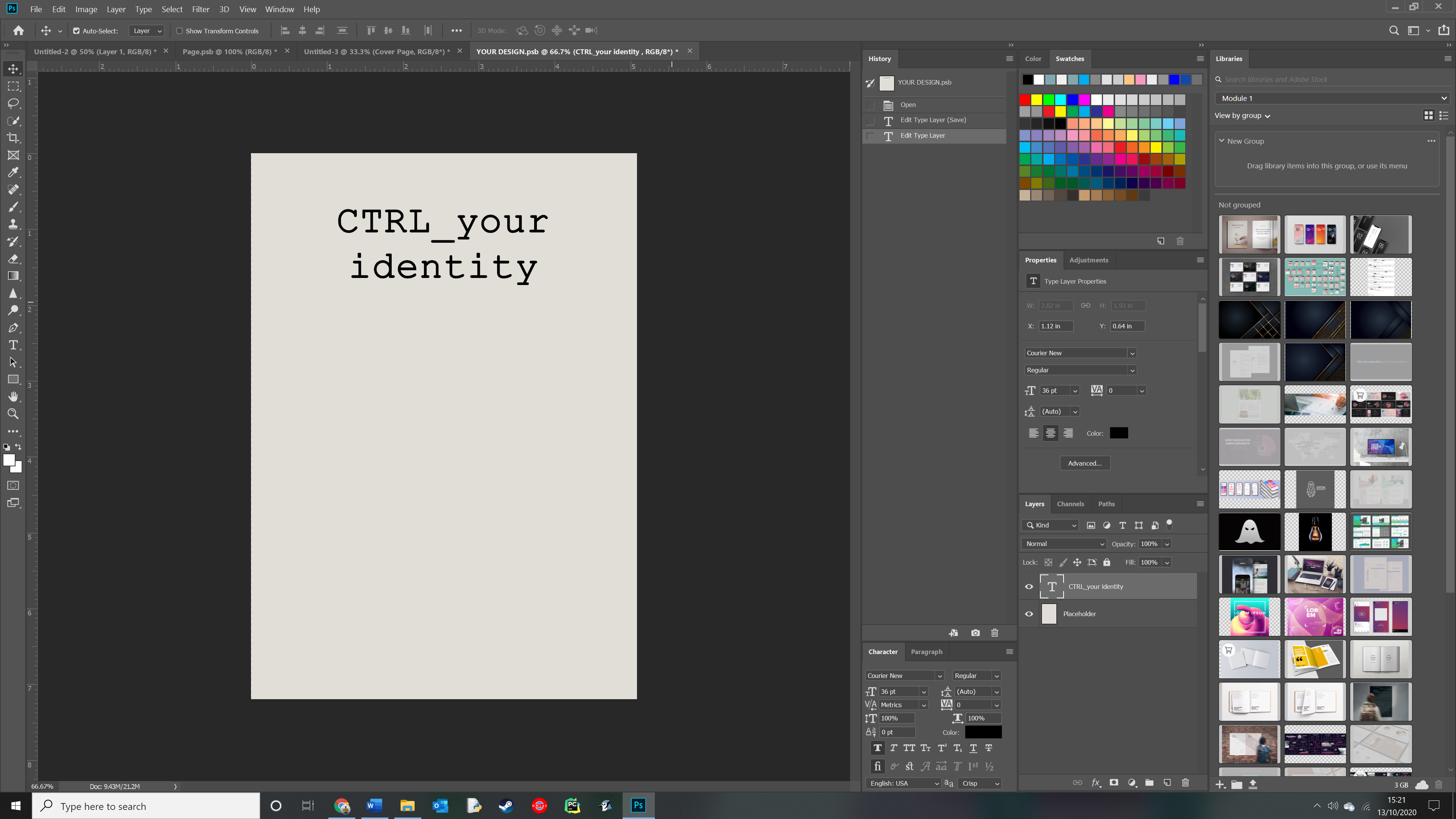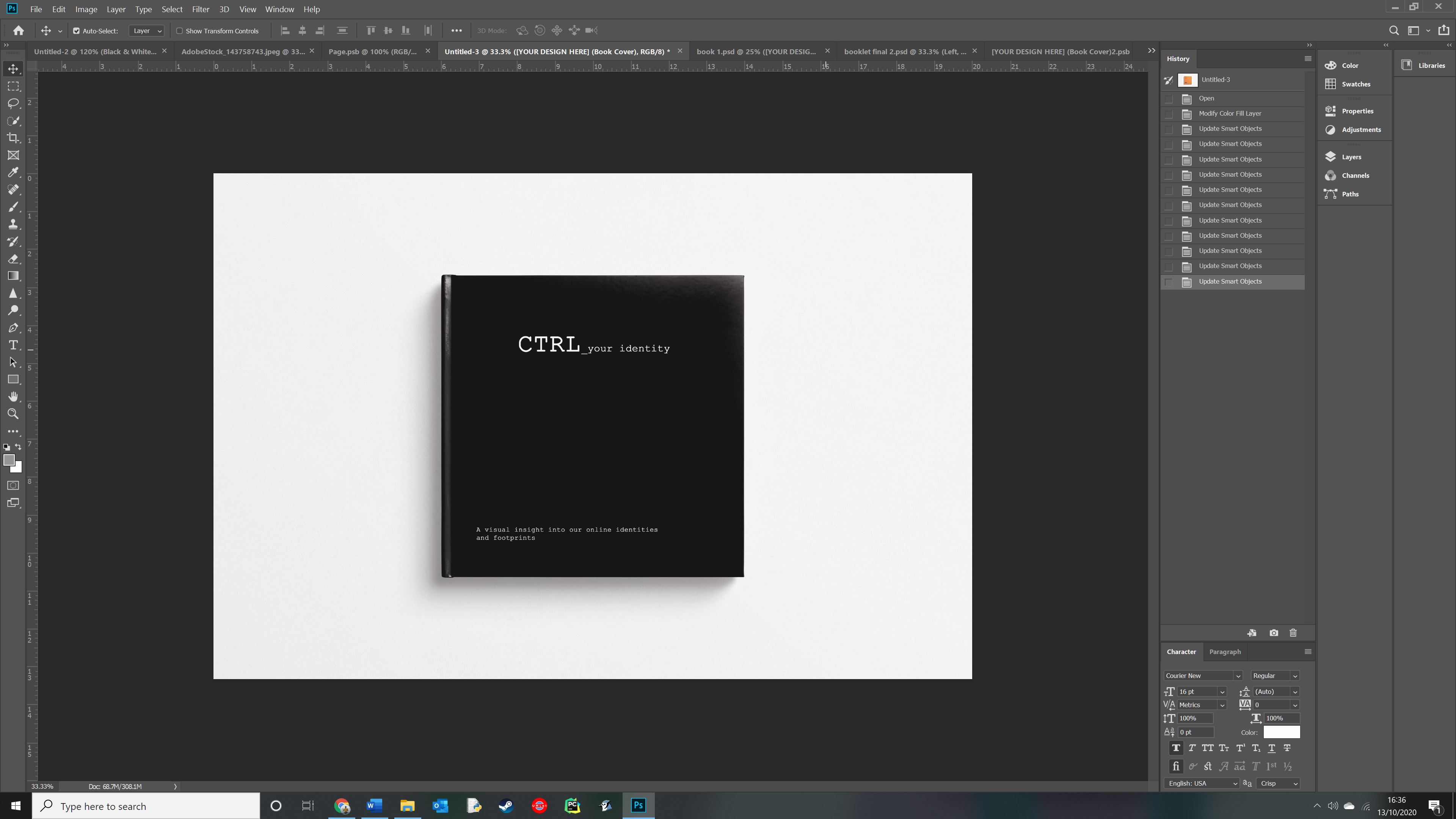 I then focussed on the title of the series – I’ve always wanted to incorporate a computer shortcut or hidden meaning – whilst not so hidden, I love the combination of CTRL and the lower case lettering in Courier New. I played around with the title for a while before moving onto the composition of the photos and wording.
