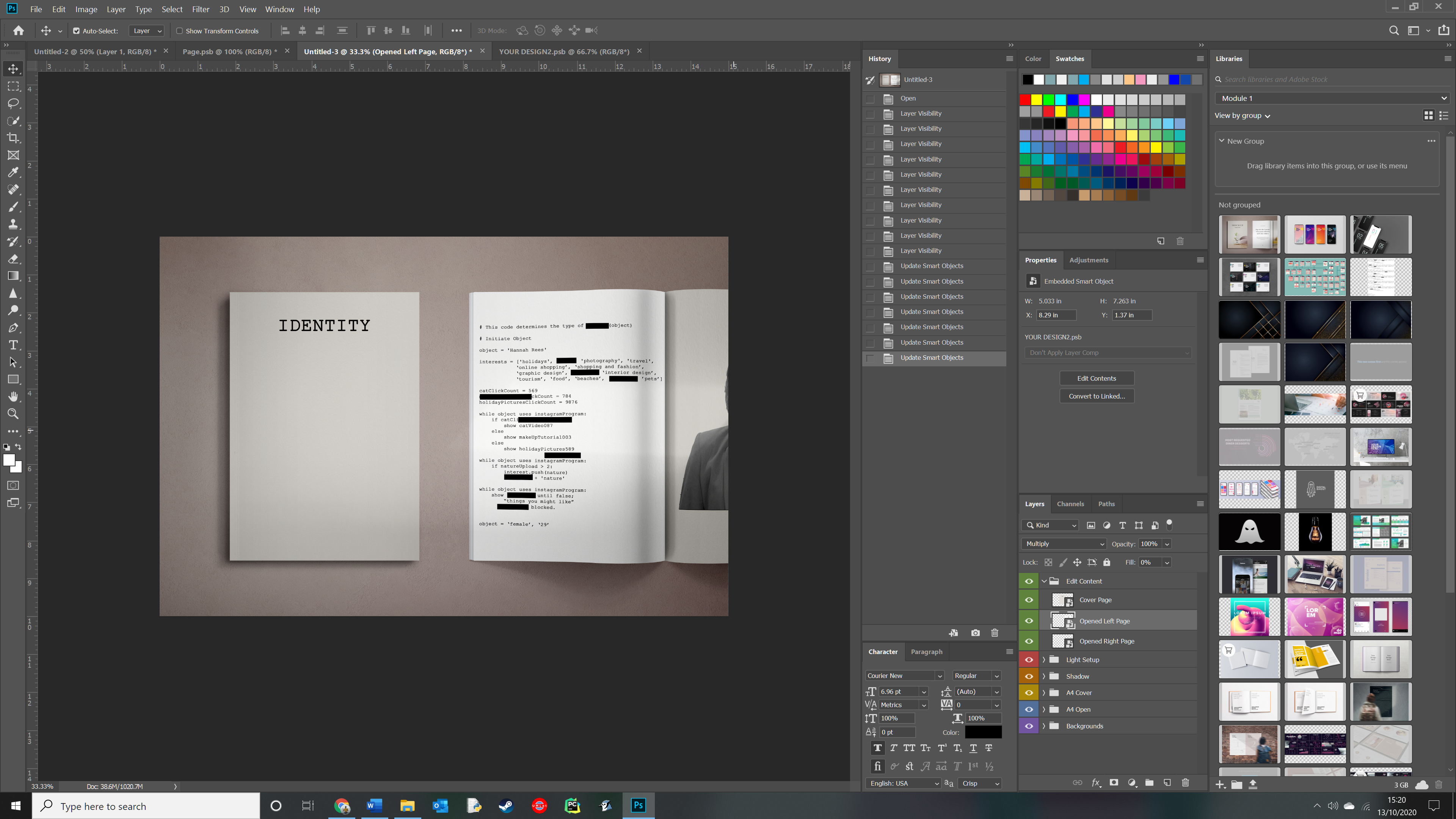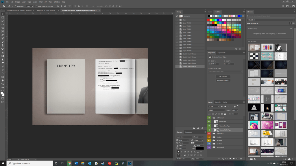 When coding is written, it’s started high up in the left hand corner with no indentation, it’s quite squashed and the formatting isn’t easy to follow. I wanted to reflect this but decided to add more paragraph spacing and lay it out so it’s more visually appealing.