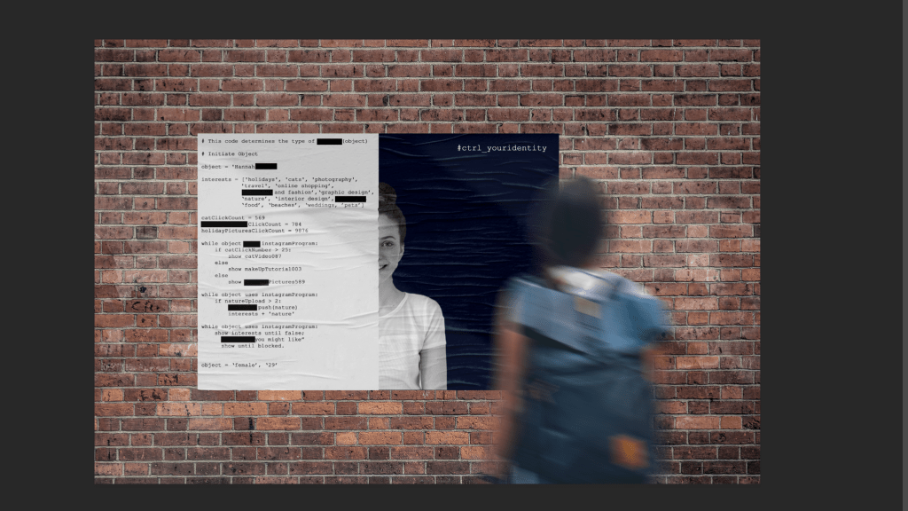 The main thing that’s missing for this is the juxtaposition of the “person as a human”. I think this is vital part of my project and something I’m wanting to make clear – that beneath all this coding is an actual human, with no control over what websites see us as, realising that everything we do online is viewed and categorised. I think it needs a sense of “humanisation” to it and I will develop on that.