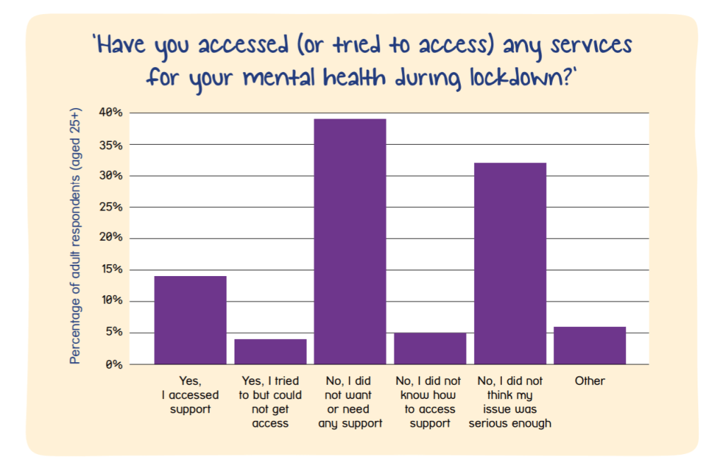 “Many people do not feel entitled to seek help and have difficulty accessing it when they do. one third of adults and over one quarter of young adults did not access support during lockdown because they did not think they deserved the support”.