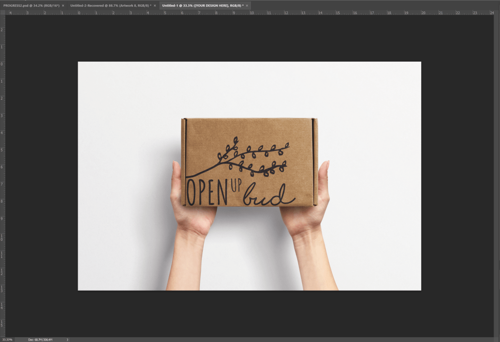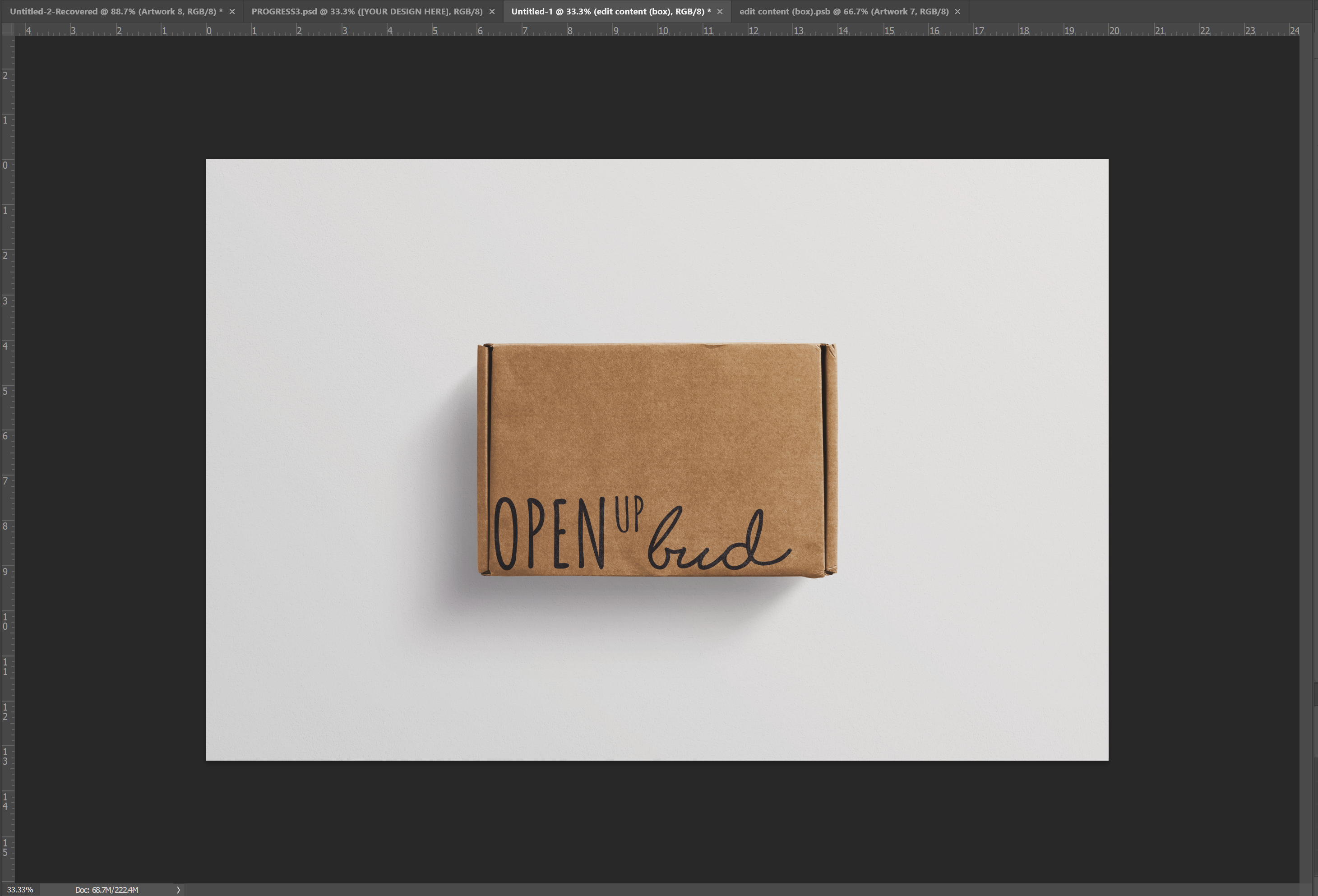Now this I don’t like as much – I couldn’t edit the interior of the box to be kraft cardboard and it just doesn’t have as much of an eco vibe. I also find the illustrations on the side too busy and messy. I’ll give this another go with a better mock up so we can see inside easier.