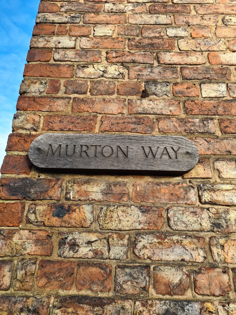 MU – Wooden sign stating : MURTON WAY. The wooden textures on this sign really add to the ageing of the lettering. A number of other signs are written in this same form and on wood, suggesting this is one of the main characteristics through the village. The signs all seem to be for more “individual” places which are very historical such as the vilage of Murton, or pinfold based at the south of an old Moated manor. For me, this sign shows the beauty in weathering over time rather than suggesting historical changes.