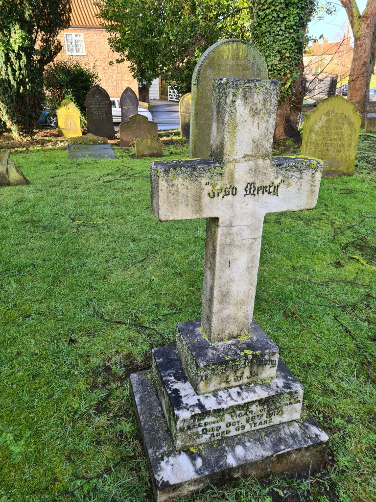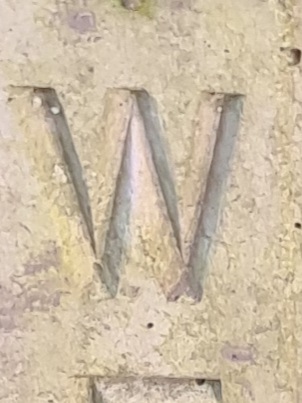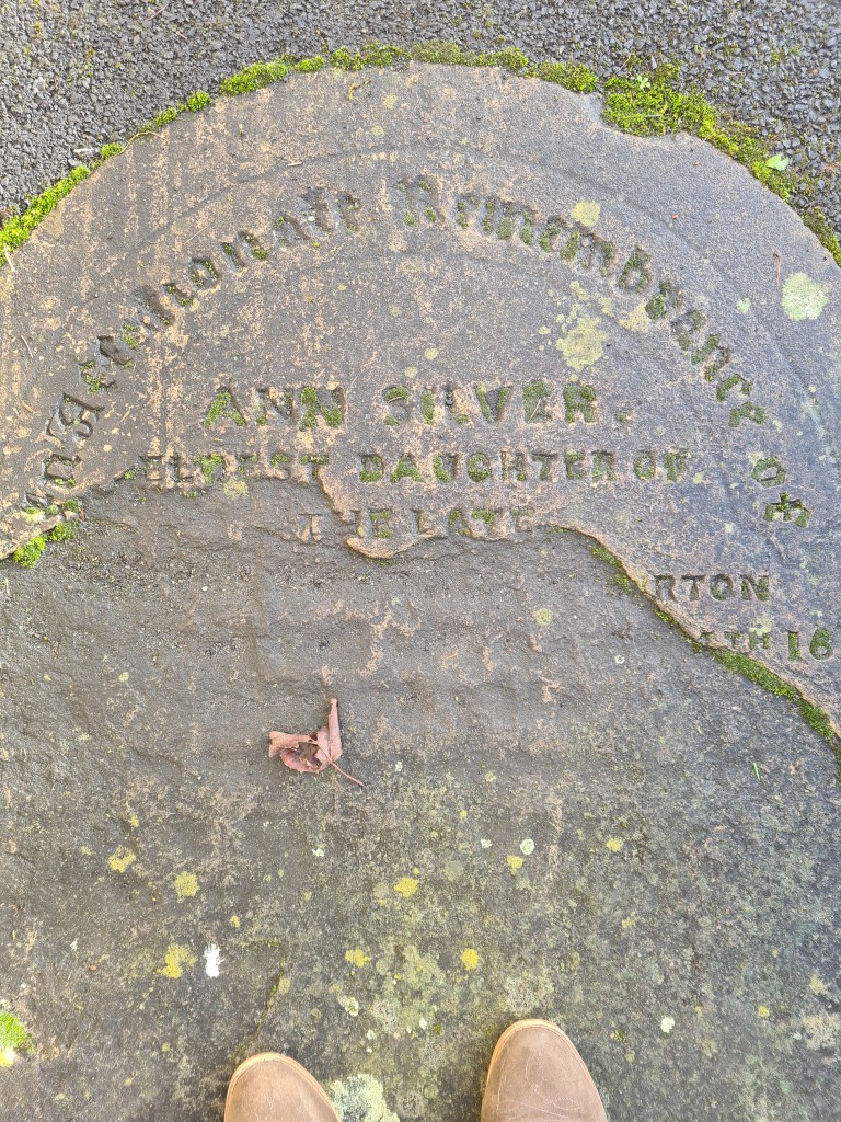 This gravestone lies on the floor path around the outside of the church. These gravestones are predominately limestone which explains the erosion of this stone. The weathering on the stone hints to the age of the grave which, from analysing the details, was from the 19th Century (1800s). Having researched further, I’ve found an excavation document showing the age of this stone to be 1878. The growth of moss and other plants around the letter aids the sign of aging and gives a beautiful aspect to an otherwise morbid form of lettering.