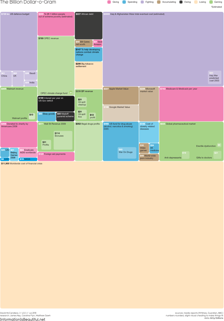 McCandless leads the way with data visualization – With our daily data overloads, we struggel, innately, to understand teh vast amounts of information given to us. As he mentioned, the use of figures and numbers in the media is meaningless to us unless we are given a comparison to work with: