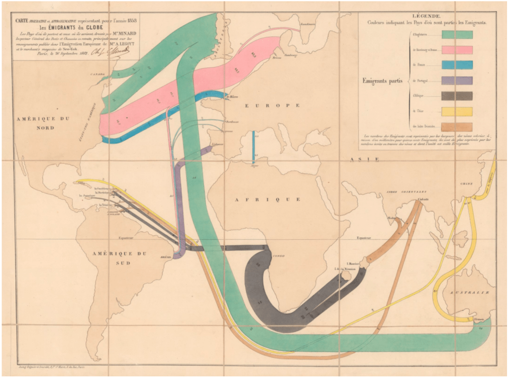 phineas (n.d.). Minard’s 1858 Map of World Migration – Sankey Diagrams. [online] Available at: http://www.sankey-diagrams.com/minards-1858-map-of-world-migration/ [Accessed 9 Feb. 2021].