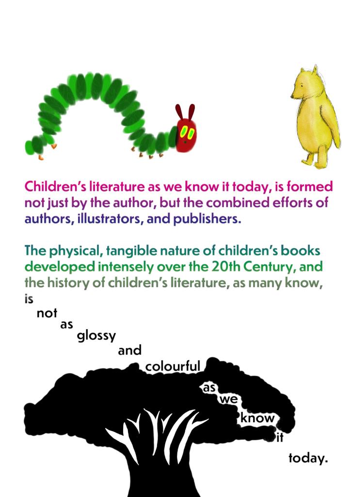 Children’s literature as we know it today, is formed not just by the author, but the combined efforts of authors, illustrators, and publishers. The physical, tangible nature of children’s books developed intensely over the 20th Century, and the history of children’s literature, as many know, is not as glossy and colourful as we know it today.