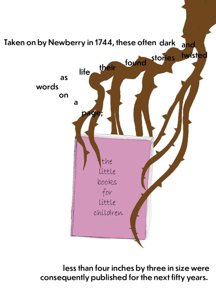 Since the early days of man, folk tales and stories have been passed down through families. Narrated stories, folklore, and fairy tales, stemming from predominantly French origin are still told to this day. Taken on by Newberry in 1744, these often dark and twisted stories found their life as words on a page; the little books for little children, less than four inches by three in size were consequently published for the next fifty years.
