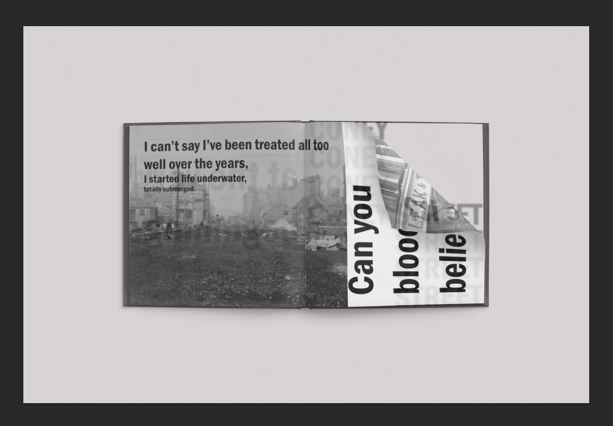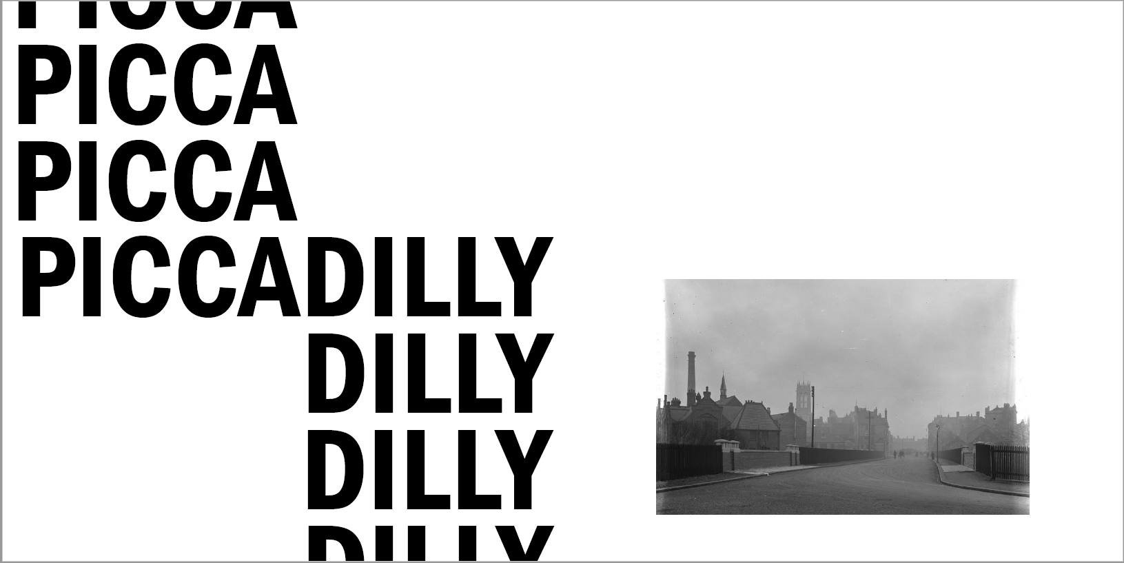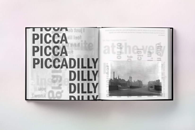 I want images in the book BUT I want the type to be the priority, the images are just backing up and helping promote the history of the streets. I’m intending on using the below layouts to show how the type will be the bold priority here, the historical images to be very ghost like.