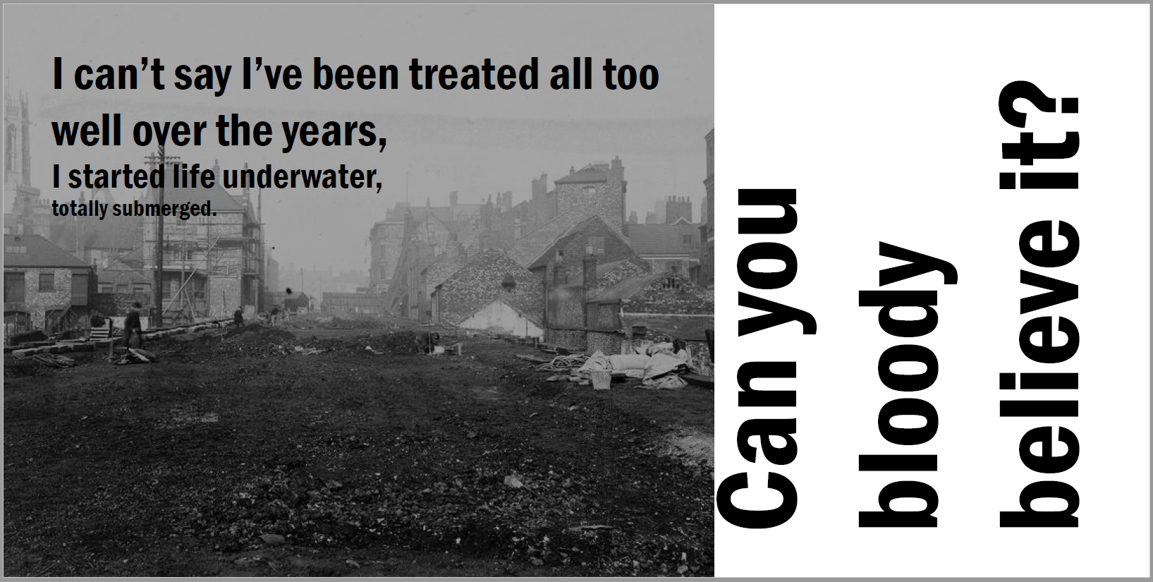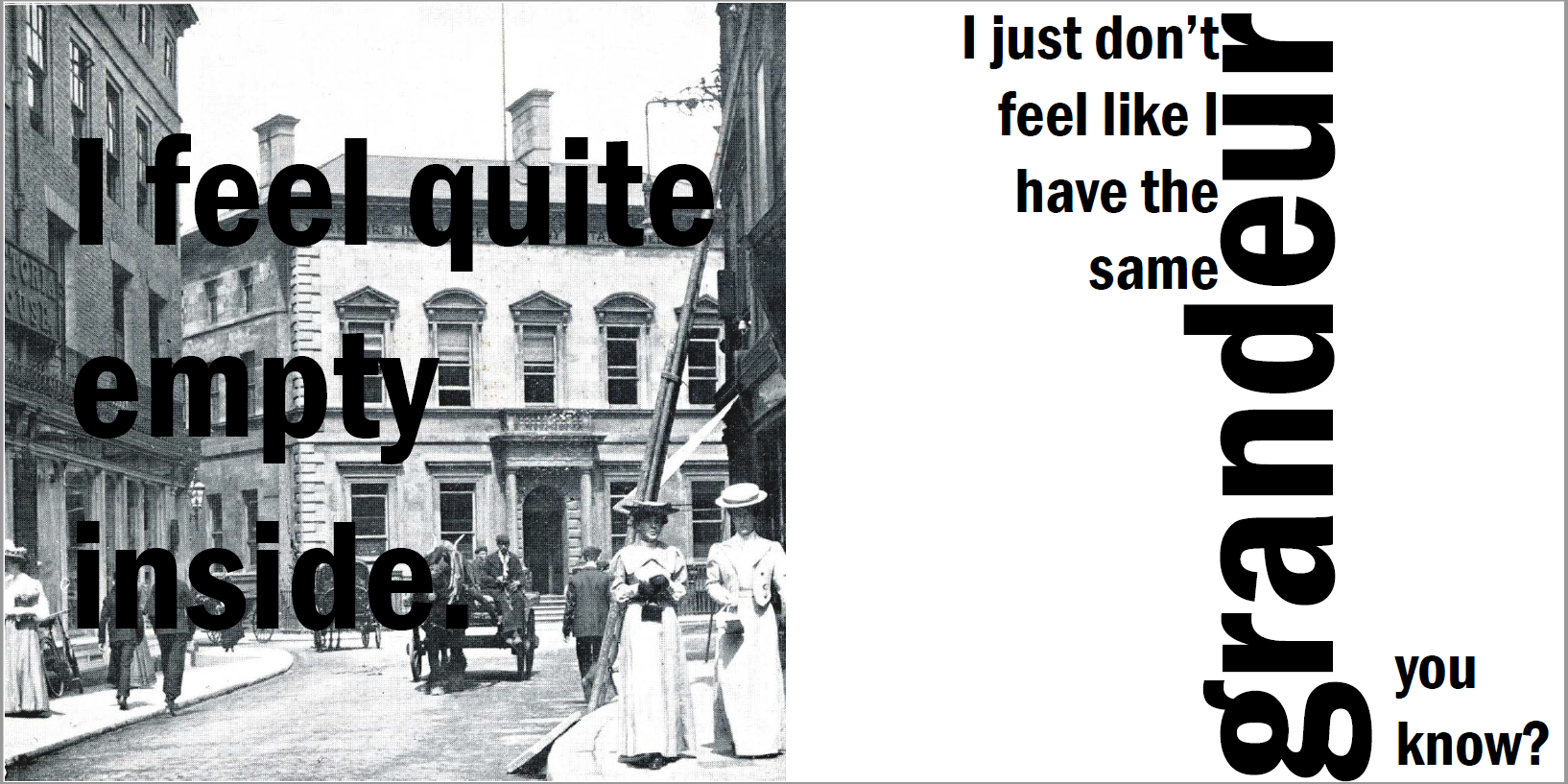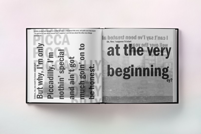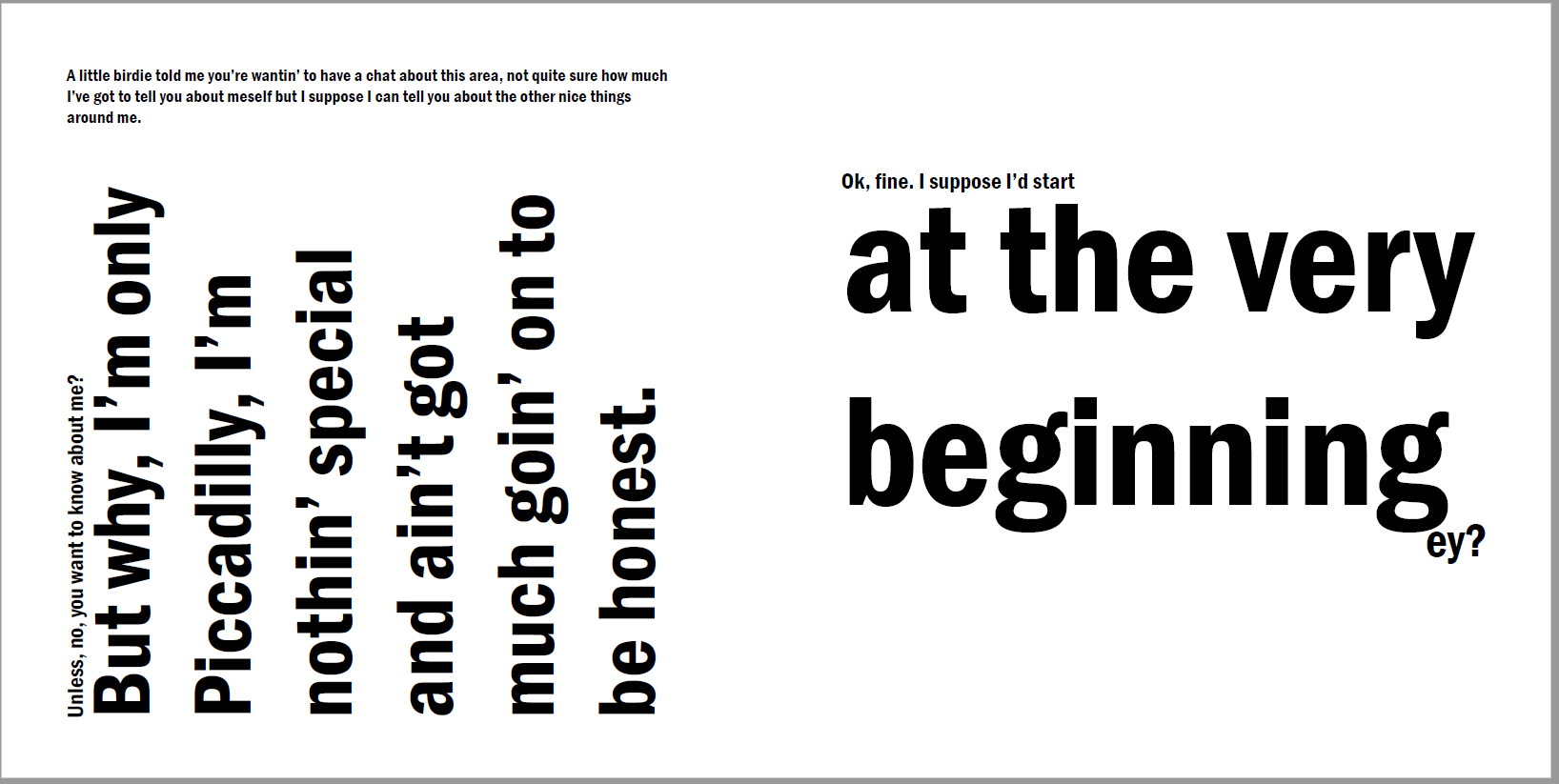 I want images in the book BUT I want the type to be the priority, the images are just backing up and helping promote the history of the streets. I’m intending on using the below layouts to show how the type will be the bold priority here, the historical images to be very ghost like.