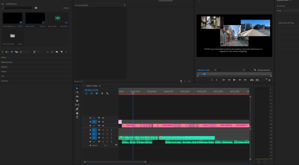 I then transferred this into Premiere Pro as I prefer working with audio and clipping in this software: