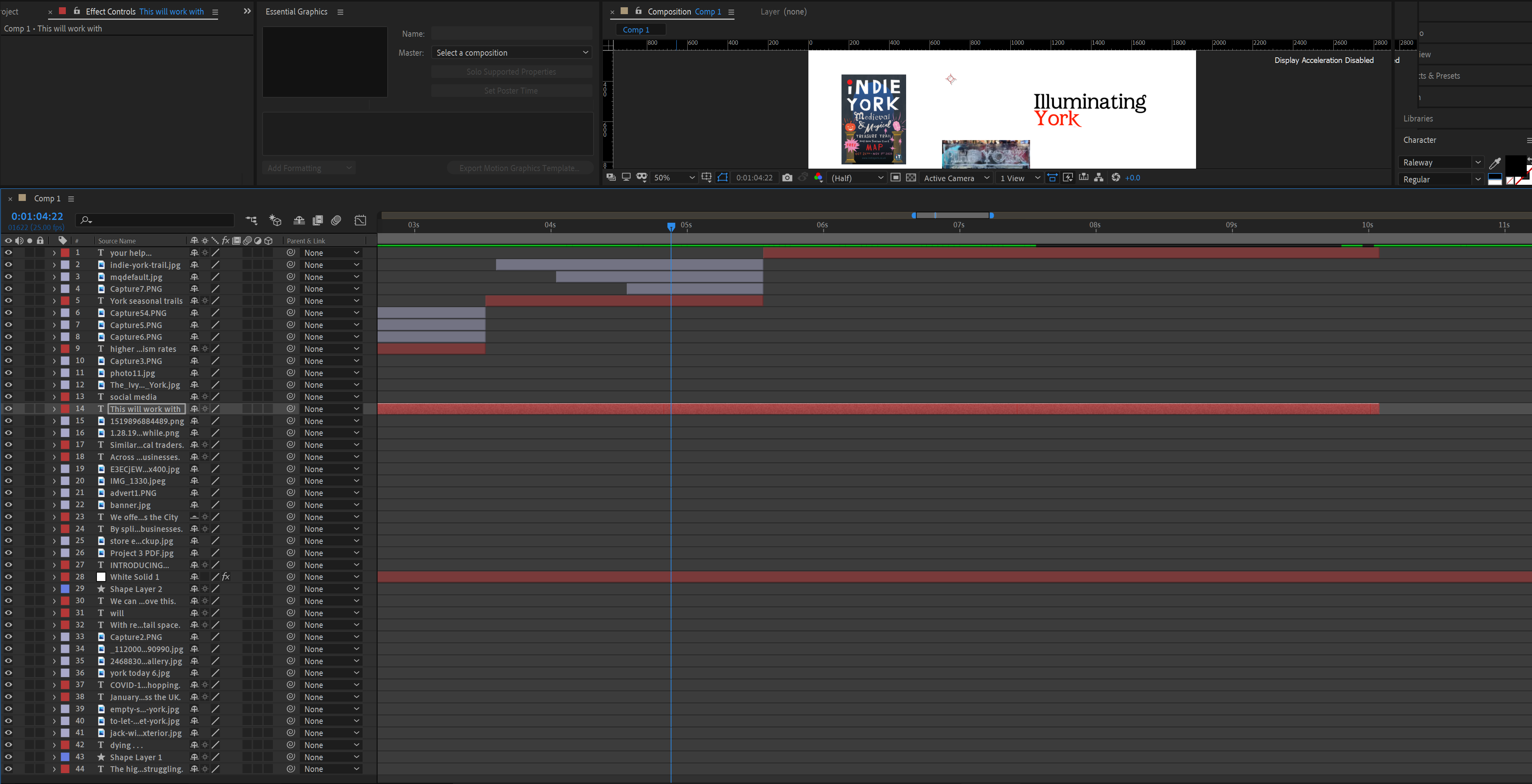 I initially started in after effects creating the typewriter effect for my writing. I wanted words on screen but also my voiceover to make sure the issue, solution and analysis was a clear as possible.