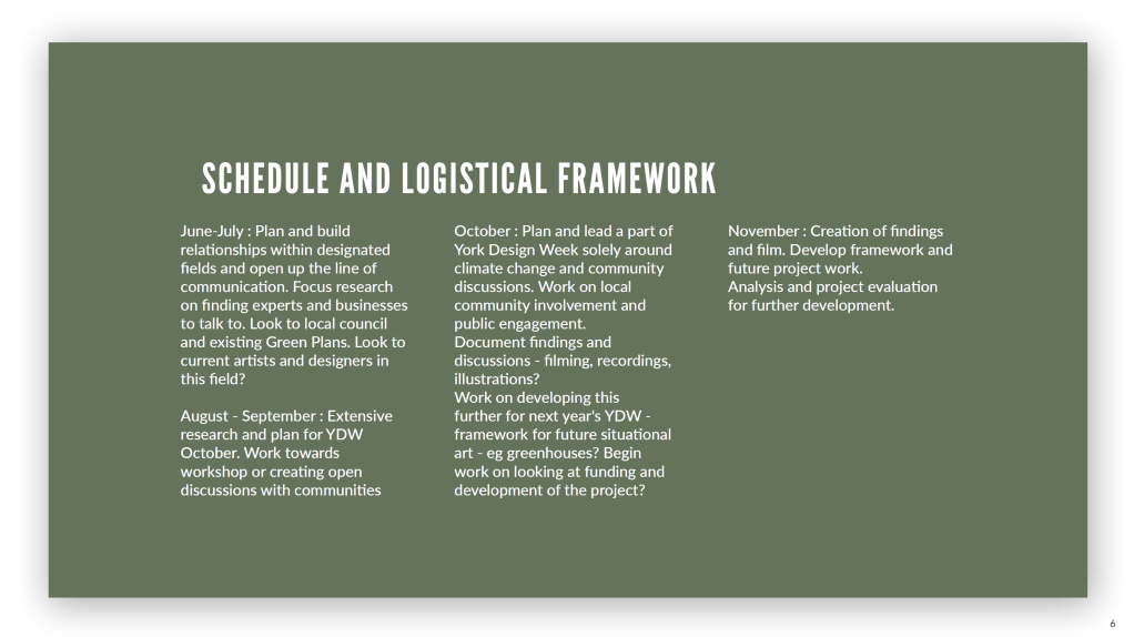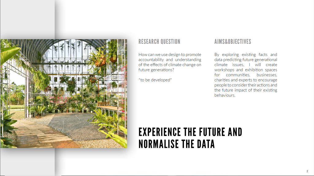 The founder of BYT also helps organise York Design Week of which I was a part of last year and am due to be a part of this year. I’m hoping to work closely with other designers and businesses here to discuss the potential of this project, the impact it could have and the stages I would have to take to make this project a reality. I’m also hoping I can aim towards YDW in October to host a talk or be part of a conversation regarding future generations and climate change.