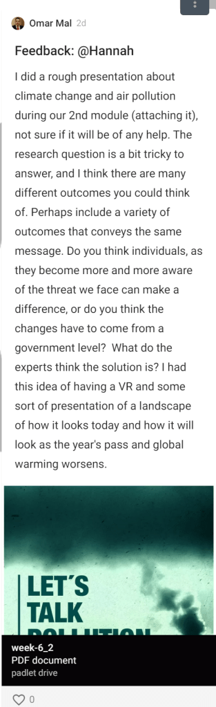 Omar’s link was hugely valuable, it was so packed full of facts and figures so I’m extrememly grateful for that. I agree with Omar, my research question needs reviewing and I’m hoping over the next week that happens and with further research I’m able to chip away at this question to really grasp the question I’m wanting to answer. I do like the idea of looking at it from a governmental level – of course we have targets and net carbon dates in mind but I’m intrigued to see how these pan out over the next few years… Will we achieve these targets or will they just be palmed off by the next government?